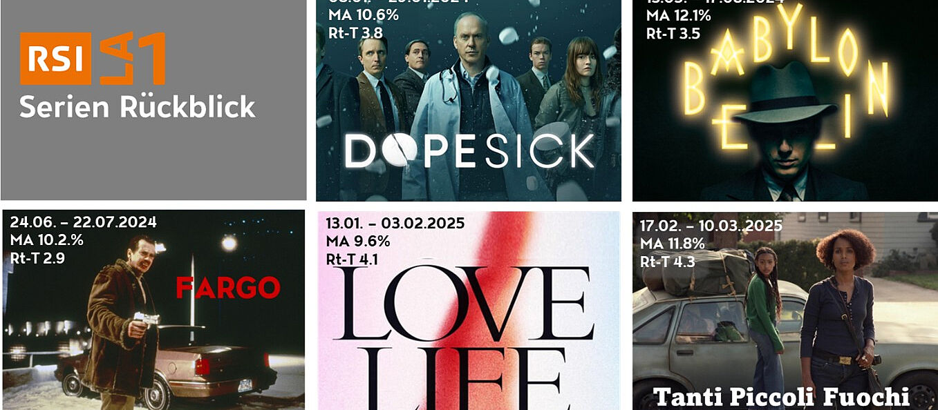 *Quelle: Mediapulse TV-Data (InstarAnalytics). I-CH, Zielgruppe 3+ Jahre inkl. Gäste, Gesamtjahr 2024, Serien montags mit Sendestart zwischen 23:30 und 24:30 Uhr, RSI LA 1, alle Plattformen, Overnight+7.