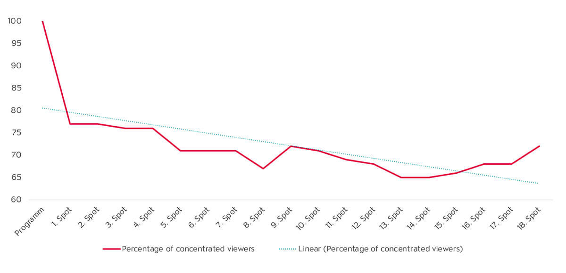 Perhaps one of the most important impact criteria is whether or not advertising is remembered: the collected recall values correspond to the differences in the length of the ad break, the advertising impression and the level of attention.
