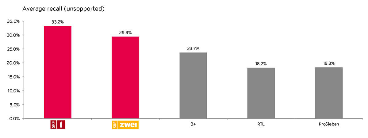 The study shows that recall performance in the form of recall is closely related to the advertising impression of the TV channel and the length of the ad break. While the advertising impression affects the response, short ad breaks increase the likelihood that advertising messages will be consciously remembered. The two SRF broadcasters SRF 1 and SRF zwei therefore have important influencing factors that generally favour the conveyance of advertising messages.