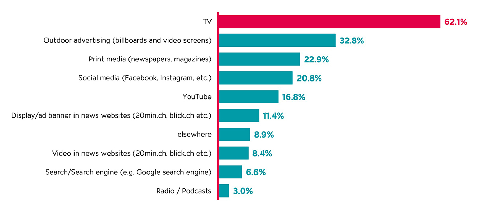 Study on the relevance of TV among advertising channels in Switzerland: TV is the flagship for advertising perception