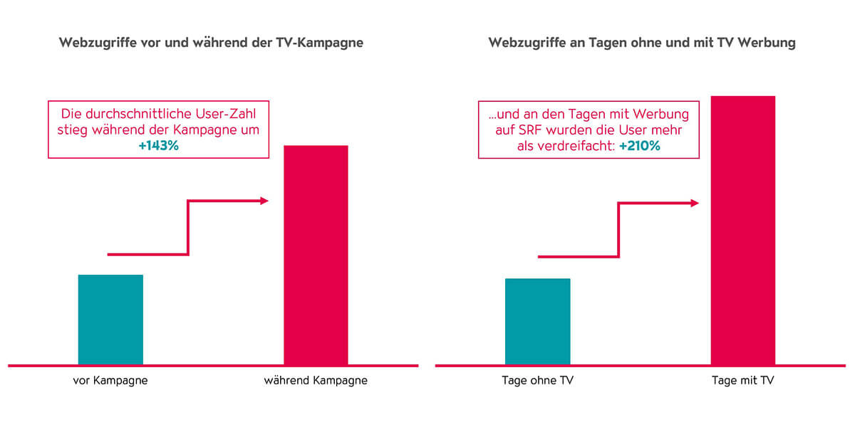 Die Kampagne von cbuy.ch wurde dank dem Einsatz von TV breit wahrgenommen. 18% der Personen in der Deutschschweiz haben einen AdRecall und können sich an mindestens eines der vier TV-Werbemittel von cbuy.ch erinnern. Für starke AdRecalls sind die SRG Sender mit ihren grossen Reichweiten, ihren qualitativ hochwertigen Umfeldern und kurzen Werbeblöcken im Mediaplan prädestiniert.