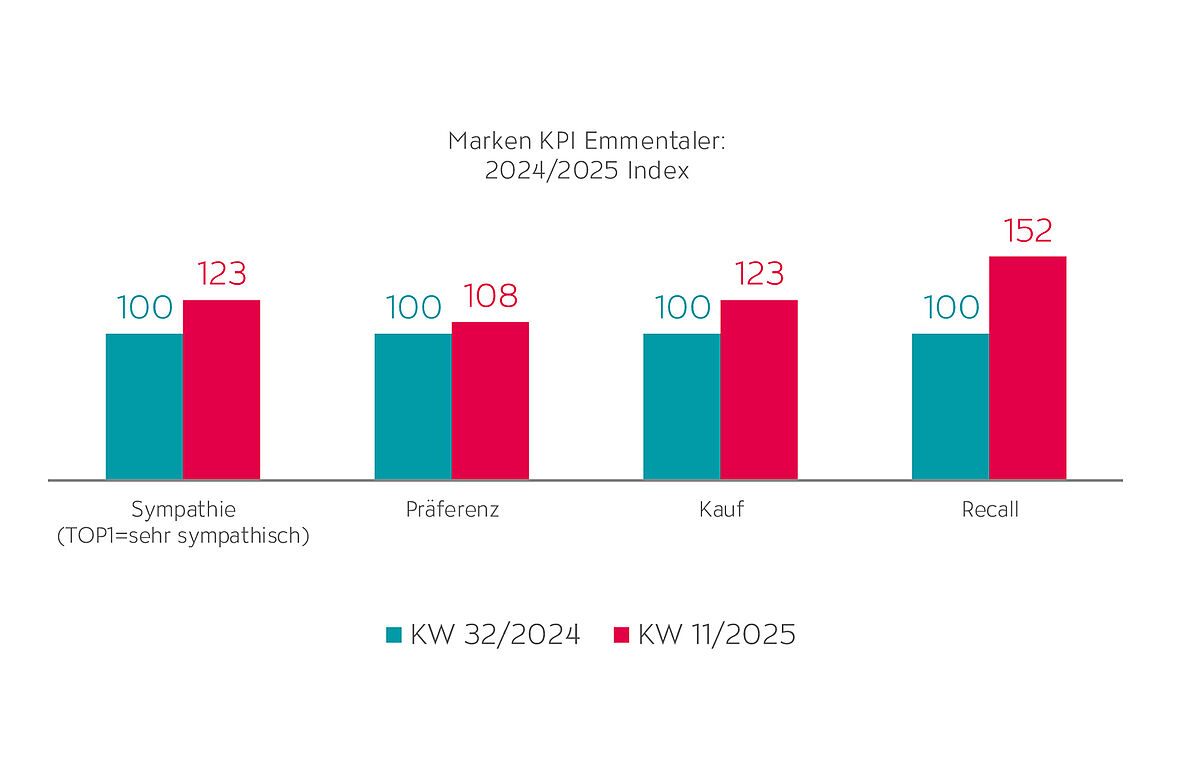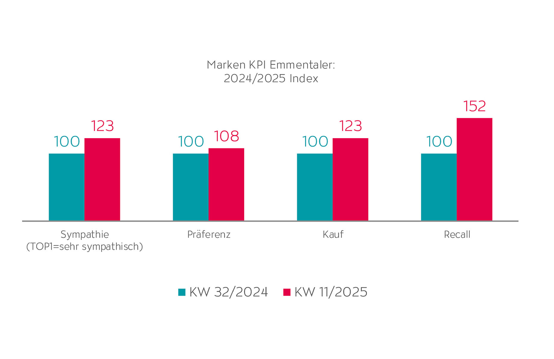 Der Anstieg der Käufe – der wichtigste Indikator für den Return on Investment – entwickelte sich ebenfalls überaus positiv: 23% mehr Befragte gaben an, das beworbene Emmentaler AOP-Produkt in den letzten vier Wochen gekauft zu haben (Index 123).
