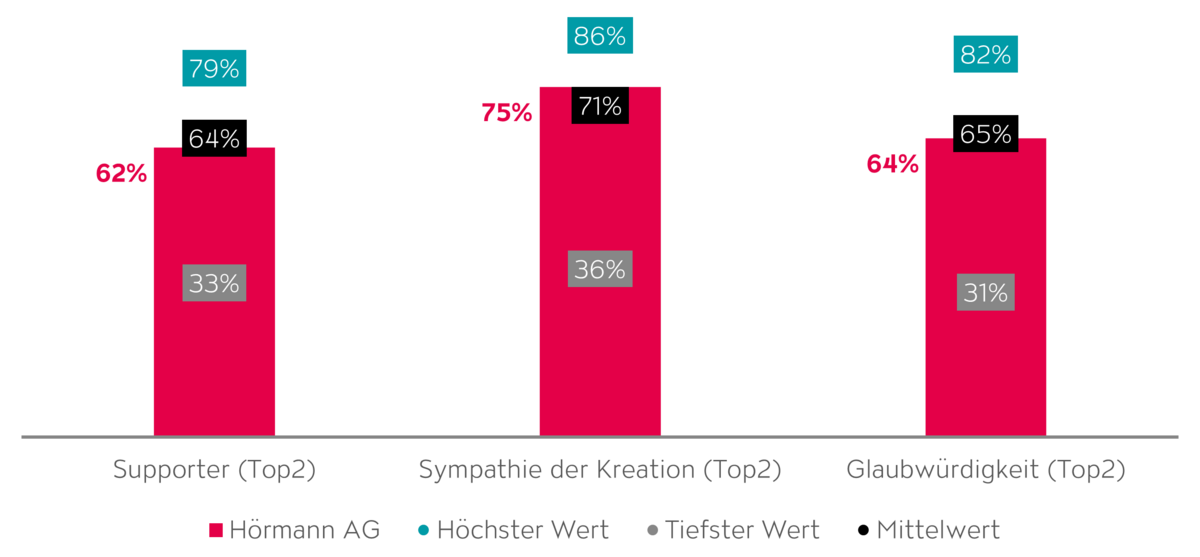 Personen mit Werbeerinnerung kannten die Marke besser, fanden sie sympathischer und würden Hörmann weit mehr bevorzugen.