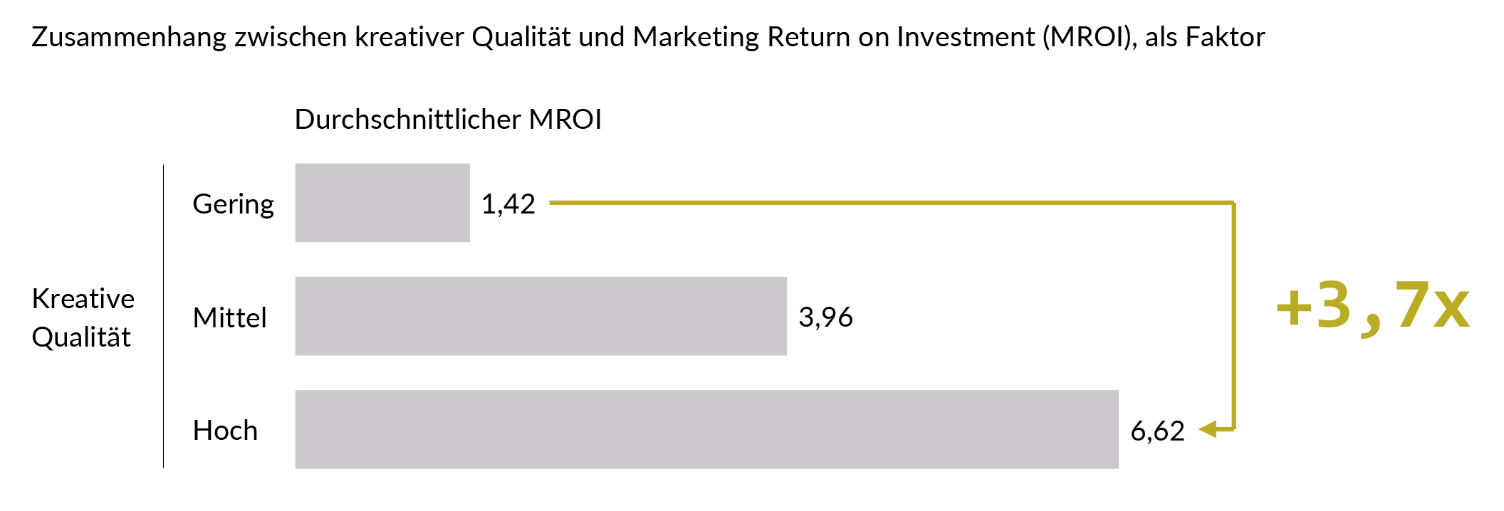 Gemäss McKinsey lassen sich 49% des Umsatzanstiegs durch Werbung auf die Qualität der Inhalte zurückführen. Werbung, die durch hohe kreative Qualität besticht, erzielt einen bis zu viermal höheren Return on Investment (ROI) als Werbung von geringer kreativer Qualität (Abb. 2).2