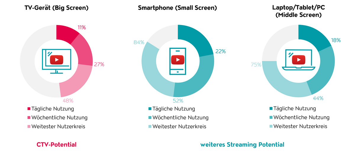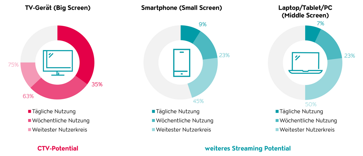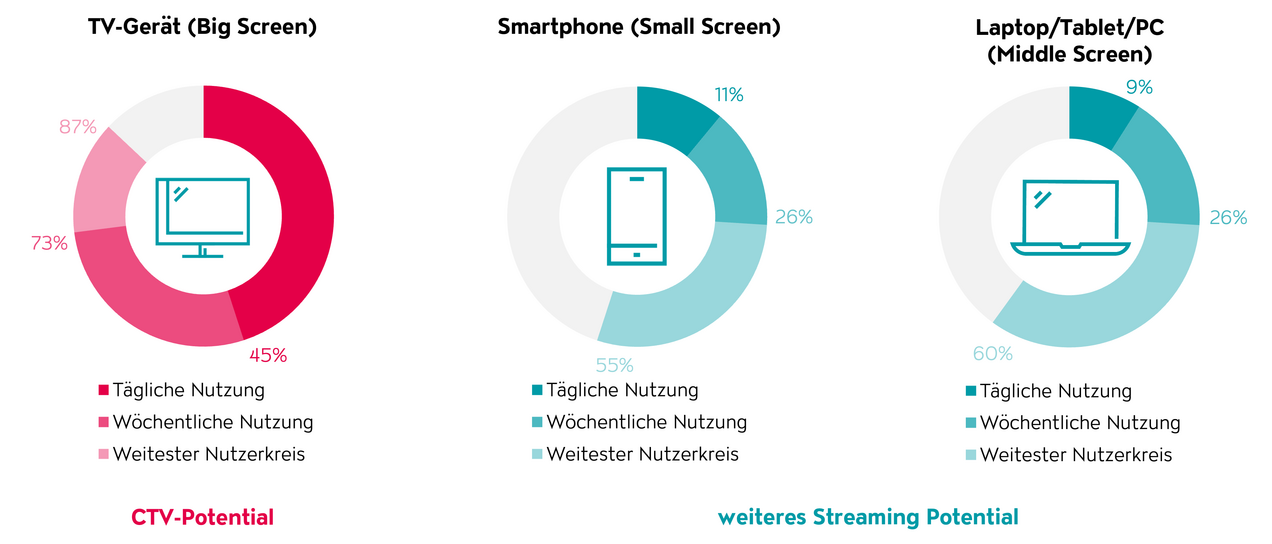 Trotz der Diskussion um CTV, dürfen auch die Small-Screens (Smartphones) und die Middle-Screens (PC/Laptops/Tablets) in der Betrachtung nicht vergessen werden.