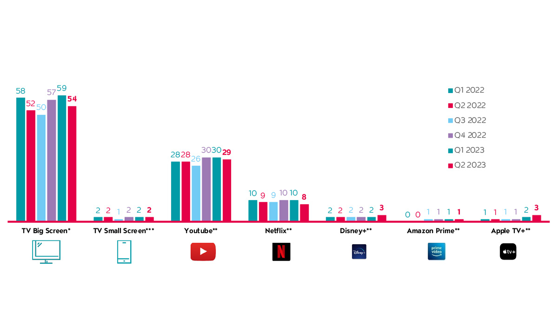 **Mediapulse Streaming Data, 01.04.2023 - 30.06.2023 VD, SD, 24h, Mo-So, Streaming-Platforms, Nutzung Zuhause, Big Screen