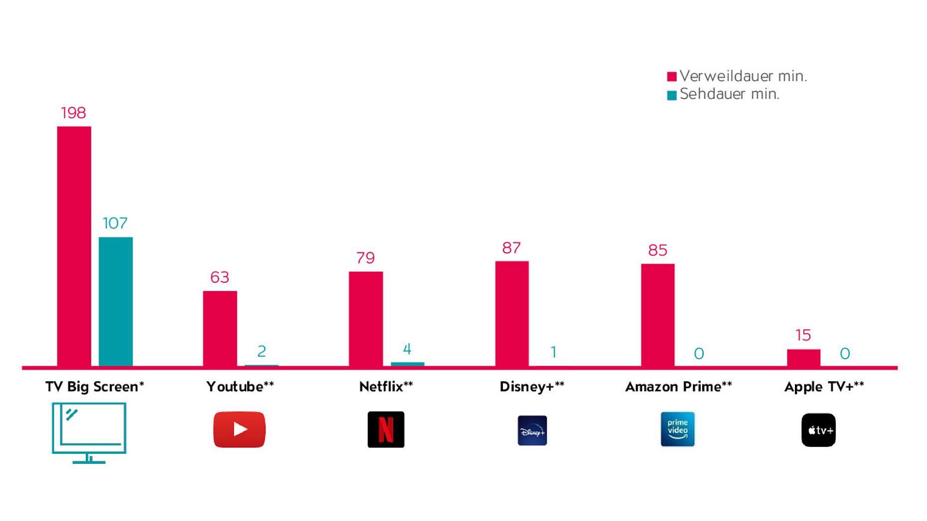 Da die Sehdauer pro Kopf (und nicht pro Nutzer:in) und somit immer auf der gleichen Basis berechnet wird, eignet sich dieser Wert am besten für die Bestimmung des richtigen Mediamix.