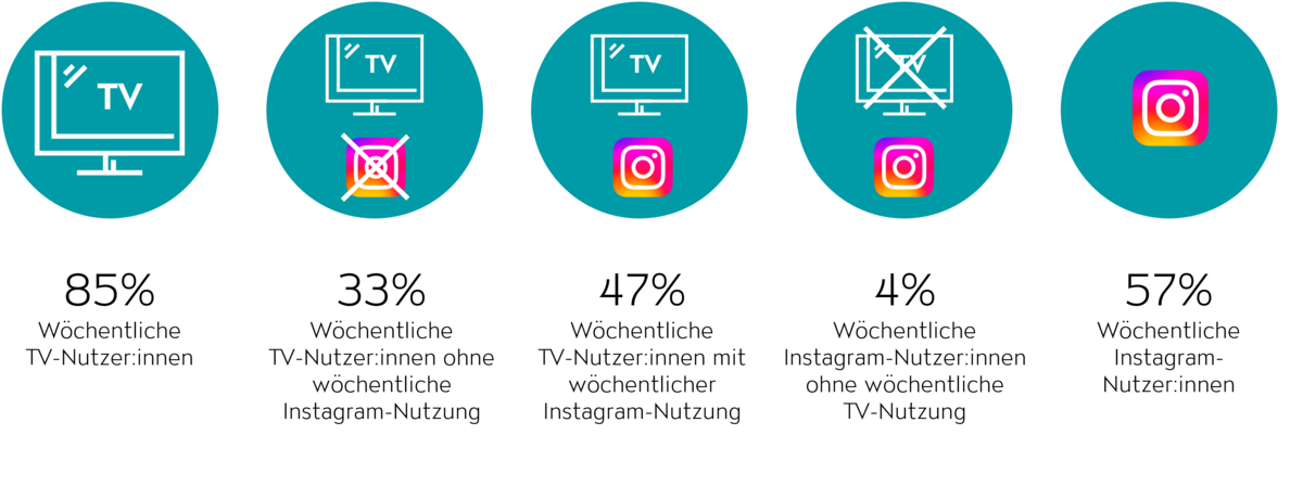 In dieser jungen Zielgruppe erreicht die Kombination aus TV und Instagram eine beeindruckende kombinierte Reichweite von 60 % pro Woche. - Hohe Instagram-Durchdringung: