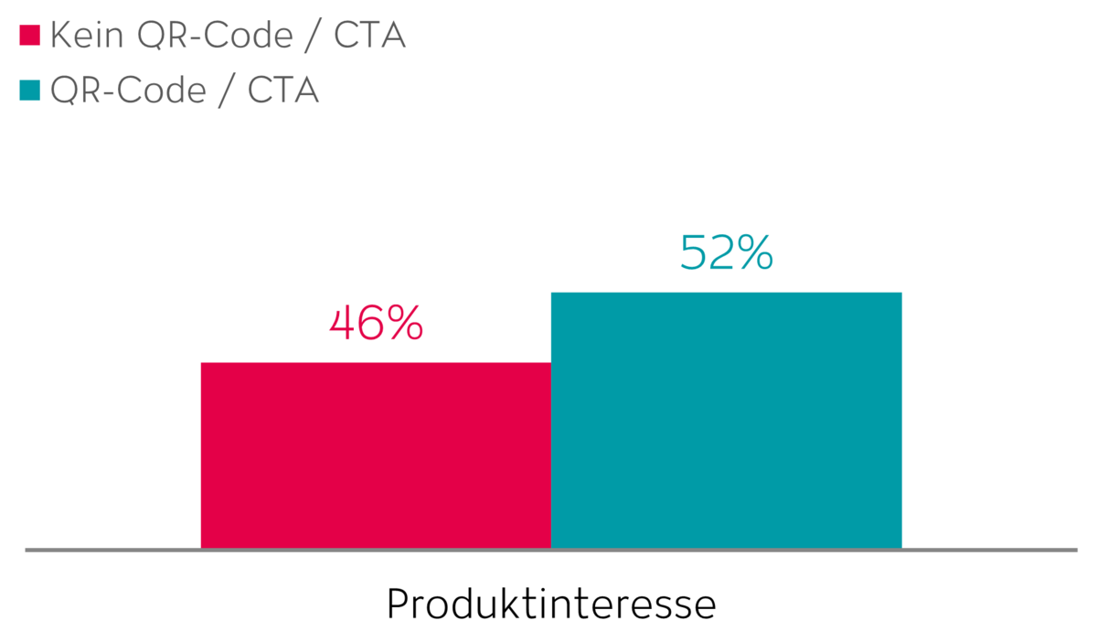 - Die Recall-Werte blieben bei den entsprechenden Testgruppen unverändert, aber Produktinteresse steigt durch den Einsatz interaktiver Elemente deutlich an (+4.3 %).