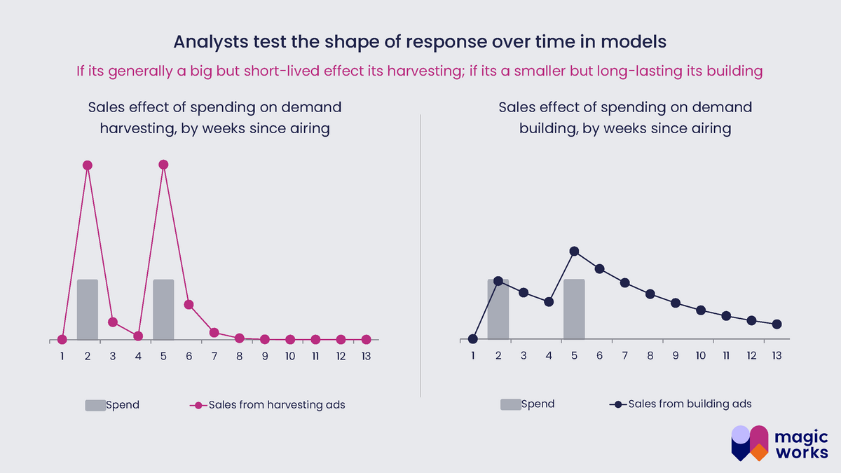 Die Analysen zeigen, dass der Umsatzeffekt von Demand Building in den Peaks kleiner, aber langanhaltend ist, während Demand Harvesting einen grossen, aber kurzlebigen Effekt hat.