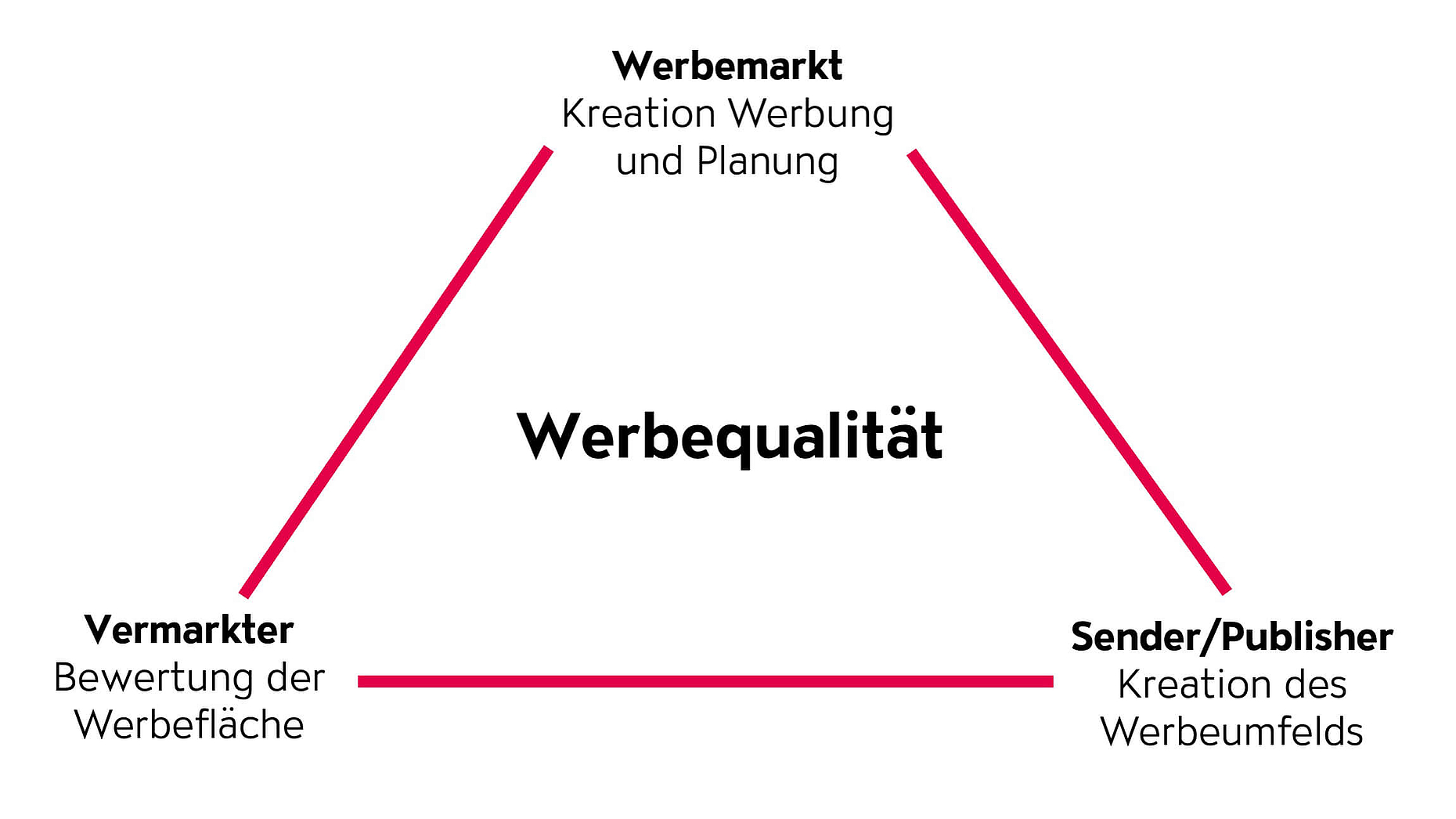 Für erfolgreiche Marketingkommunikation spielt die Qualität der Werbung eine entscheidende Rolle. Geprägt wird diese massgeblich durch die Werbetreibenden, welche die Werbung kreieren und platzieren. Die Qualität hängt aber auch von den Publishern bzw. den Sendern, welche das redaktionelle Umfeld prägen, sowie vom Vermarkter ab, welcher den Werbeplatz bewertet und zur Verfügung stellt.
