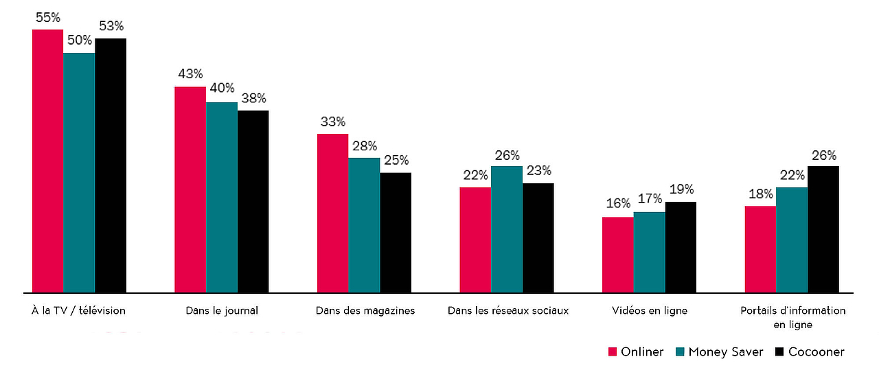 La pandémie entraîne donc des changements au niveau des comportements d’achat en ligne, d’épargne et de cocooning. La première question est de savoir à quelle forme de publicité ces groupes de personnes prêtent attention.