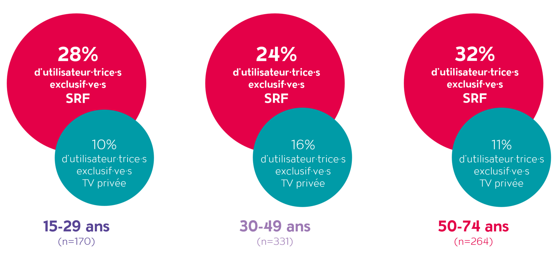 Le groupe des utilisateur·trice·s exclusif·ve·s de la SRF est ainsi plus de deux fois plus grand que celui des chaînes privées.
