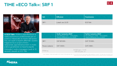 «Eco Talk» riflette e approfondisce la realtà economica e professionale di un pubblico interessato agli affari con sorprendenti ospiti dialoganti.