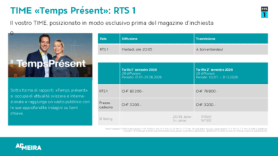 Quando prenotate TIME Temps Présent, beneficiate del massimo impatto pubblicitario nel cuore del programma e della massima credibilità!
