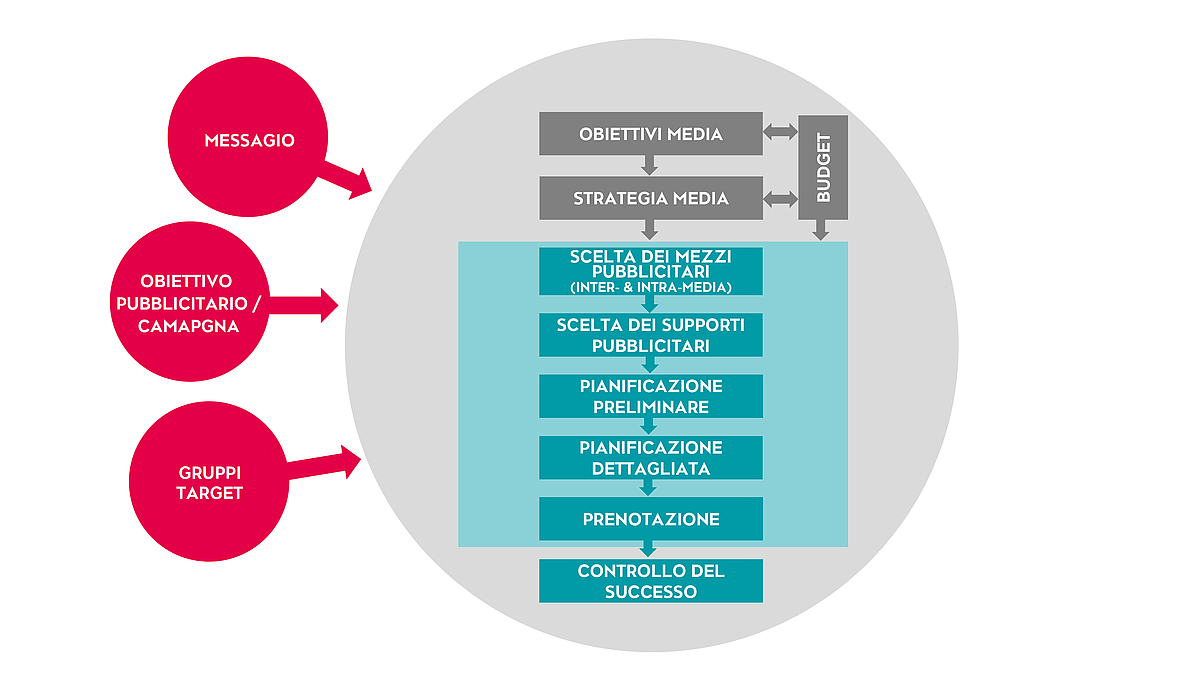 Questo grafico illustra nel dettaglio le varie fasi della pianificazione di mezzi pubblicitari nel settore televisivo e offre inoltre una panoramica chiara dell’intero processo.
