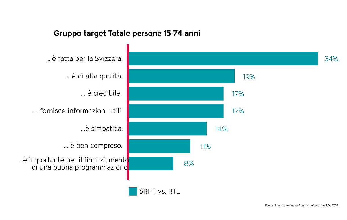 Swissness: i programmi della SRG sono molto legati alla cultura e alla società svizzere e sono quindi estremamente familiari e credibili per la popolazione elvetica.
