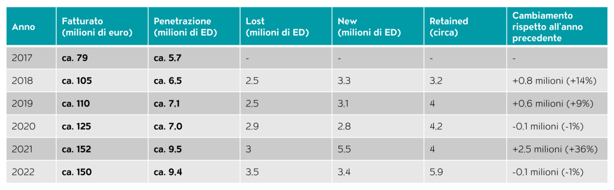 In occasione del Market Intelligence Meeting 2025 2 di etga, Guido Modenbach ha dimostrato con un esempio quanto sia importante la fedeltà al marchio e anche il costante coinvolgimento di consumatori non fedeli (si veda la tab. 1): un marchio di cioccolato perde costantemente economie domestiche di acquirenti (colonna «Lost»), eppure registra una crescita, perché conquista più economie domestiche di quante ne perda (colonna «New»). Questo esempio fa luce anche sul fatto che il fatturato è direttamente correlato alla penetrazione. È quindi fondamentale conquistare nuovi acquirenti non ancora fedeli.3