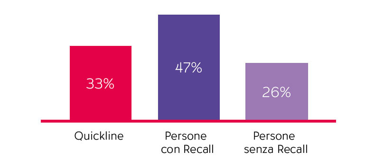 E anche la simpatia nei confronti del marchio è aumentata notevolmente grazie alla pubblicità televisiva. La percentuale di persone che trova Quickline piuttosto o molto simpatica aumenta dal 21% al 33%, un aumento di quasi il 60%. Per le persone che ricordano lo spot televisivo, il valore passa addirittura dal 33% all’eccezionale 47%.