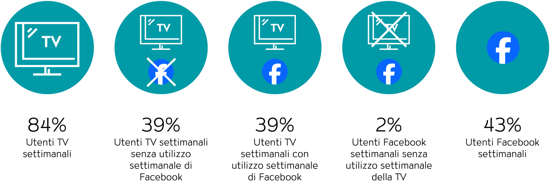 Facebook è una piattaforma meno potente di Instagram, con una penetrazione settimanale complessiva del 43%. Di conseguenza, la strategia dei contatti TV combinati con successivi contatti Facebook può raggiungere solo una penetrazione settimanale potenziale del 39% (15-75 anni). Tuttavia, con una quota di dispersione che non può essere supportata con un precedente contatto TV solo pari al 5%, Facebook si dimostra senz’altro interessante (fig. 3).