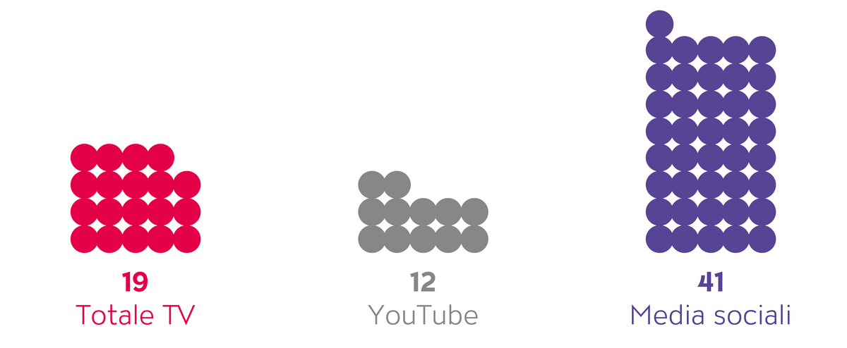 Quasi un quarto delle persone (21%) guarda la Total TV (lineare e BVOD) regolarmente e a orari fissi. Non avviene lo stesso nel caso di YouTube (8%) e dei social media (5%). A differenza dei canali televisivi, si smette di guardare i social media solo quando è necessario, non perché lo si voglia, quindi indipendentemente dal tempo (41%).