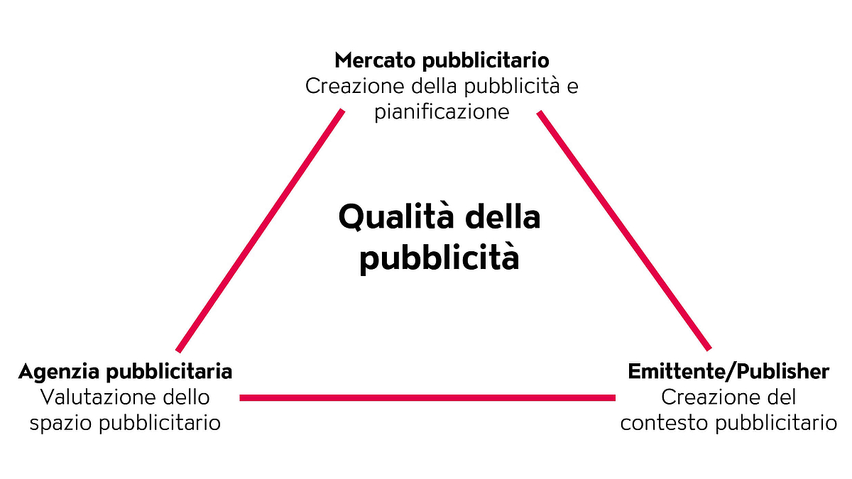 Per una comunicazione di marketing efficace, la qualità della pubblicità è decisiva. A influenzarla sono principalmente gli inserzionisti che creano e posizionano la pubblicità. La qualità dipende però anche dai publisher e dalle emittenti, che caratterizzano il contesto redazionale, nonché dall’agenzia pubblicitaria, che valuta e mette a disposizione lo spazio.