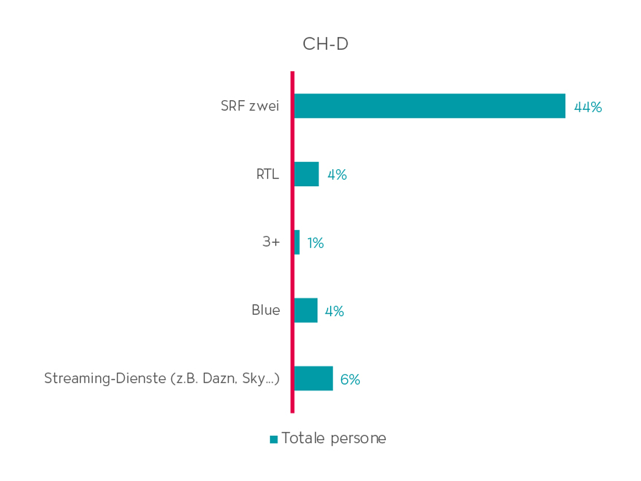 La Svizzera è un Paese con un’elevata affinità per lo sport e, di conseguenza, presenta un grande potenziale di target per la pubblicità nel contesto sportivo. Per il pubblico svizzero, SRF zwei e RTS 2 sono le principali emittenti sportive, con una qualità delle stesse che si riflette in molti aspetti. In quanto parte del portafoglio Admeira, l’ampia offerta sportiva delle emittenti della SSR costituisce una piattaforma unica in grado di garantire un vantaggio sostanziale agli inserzionisti.